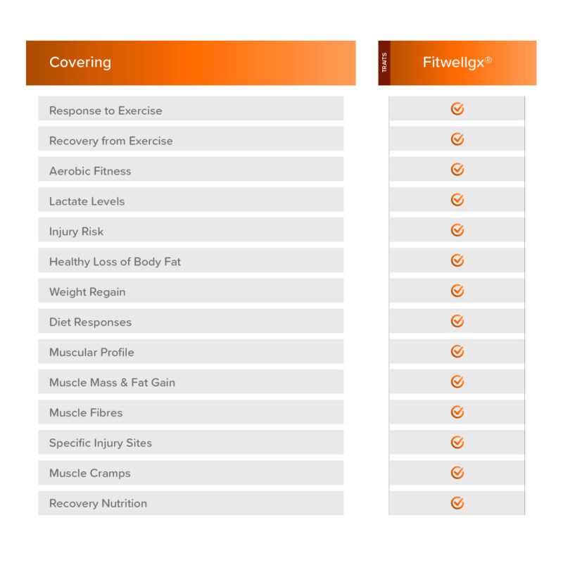 Fitwellgx® offers a comprehensive DNA analysis that delves into your genetic predispositions related to fitness. By examining specific genetic markers, this test provides insights into your muscle composition, endurance capabilities, recovery needs, and injury risks. Armed with this information, you can tailor your training, nutrition, and recovery strategies to align with your genetic strengths.